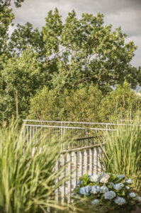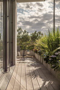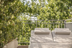 - Mehrere, französische Balkone mit Blick in malerische Baumkronen